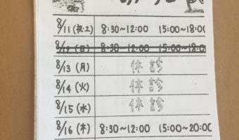 お盆休みは下記の通りになります!! 11日 8:30~12:00 15:00~18:00 12日、13日、14日、15日 休診 16日より通常診療になります。 ...