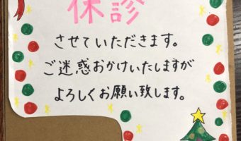 誠に申し訳ありませんが12月15日土曜日の診療はお休みとさせて頂きます。 ご迷惑をお掛けしますがよろしくお願いいたします。 急患の方はご連絡下さい。